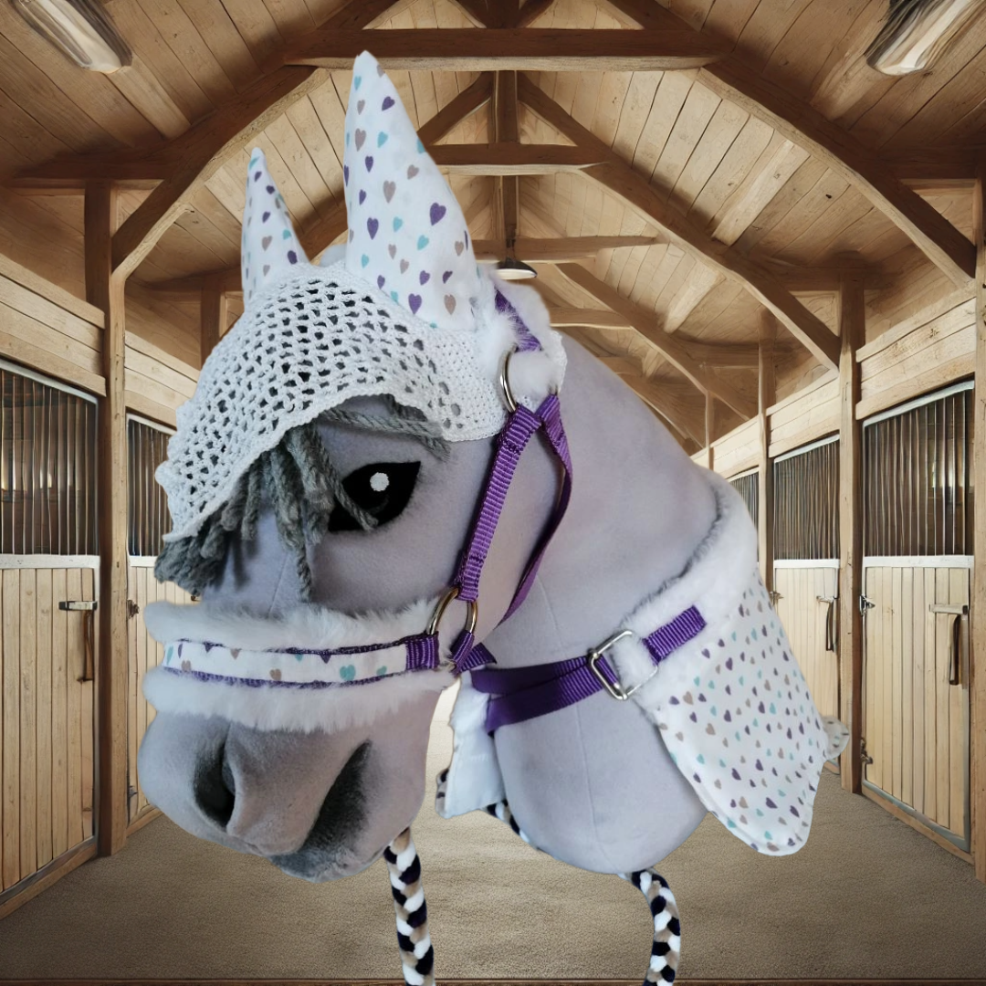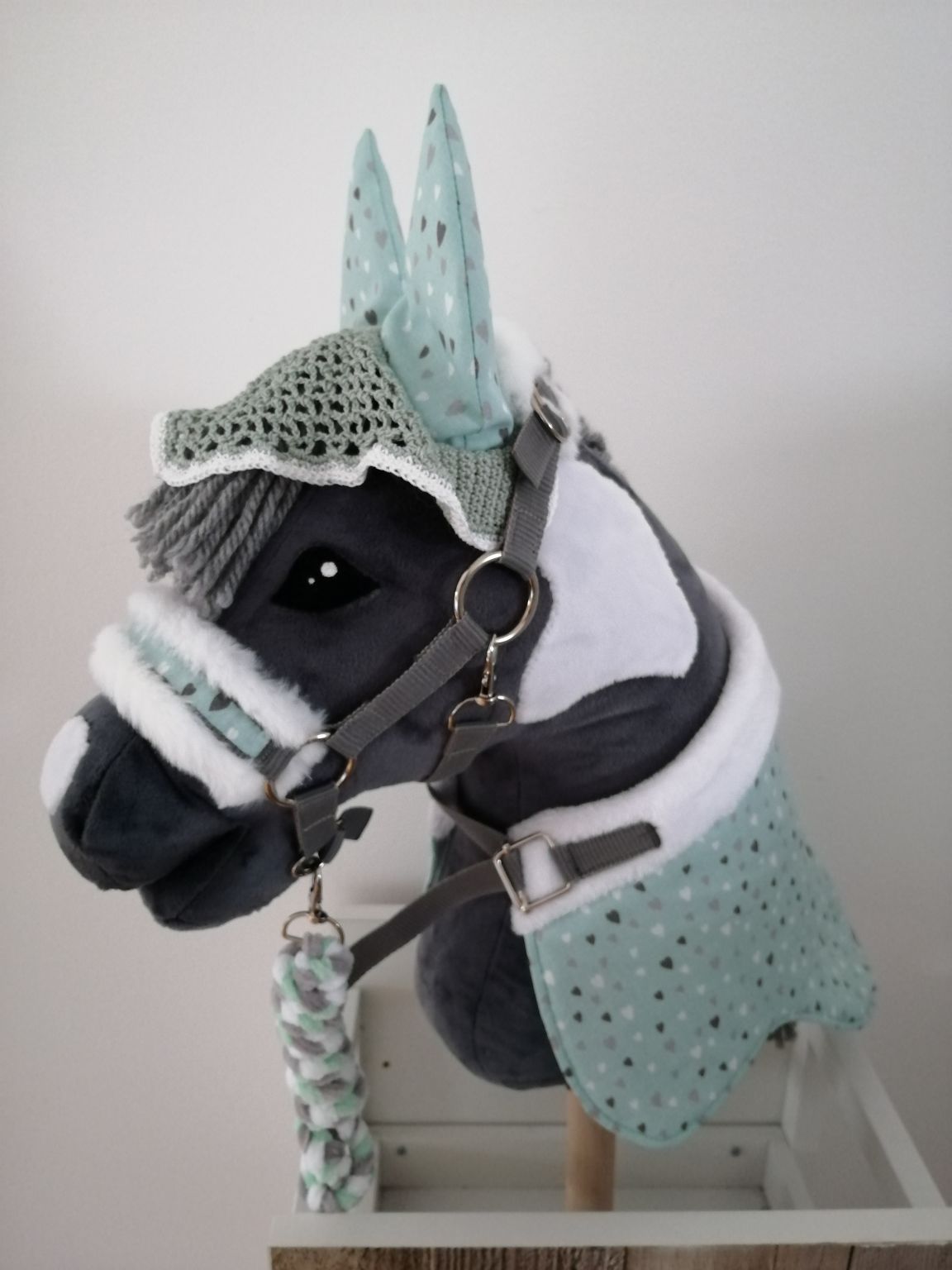 - Fliegenmütze: Die Fliegenmütze wird in liebevoller Handarbeit gehäkelt und sorgt dafür, dass Ihr Hobby Horse auch bei warmem Wetter gut geschützt ist.