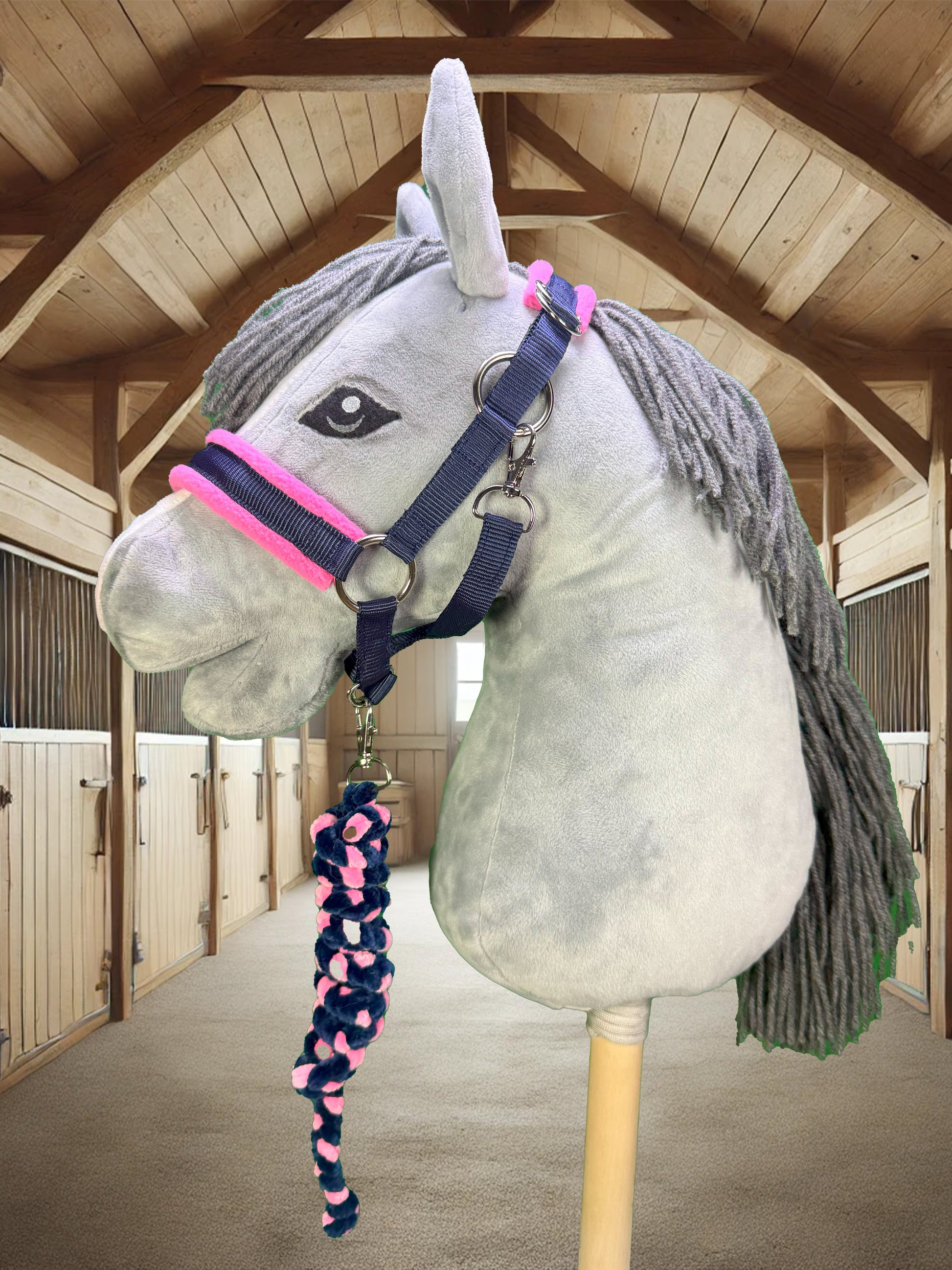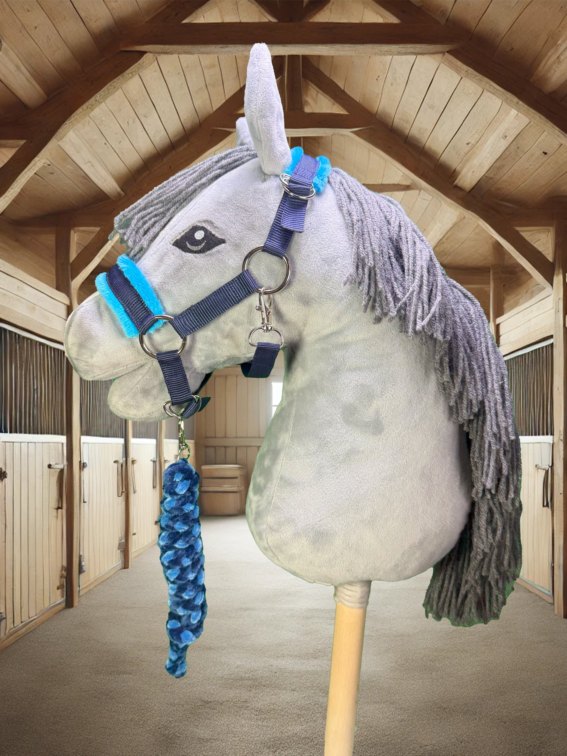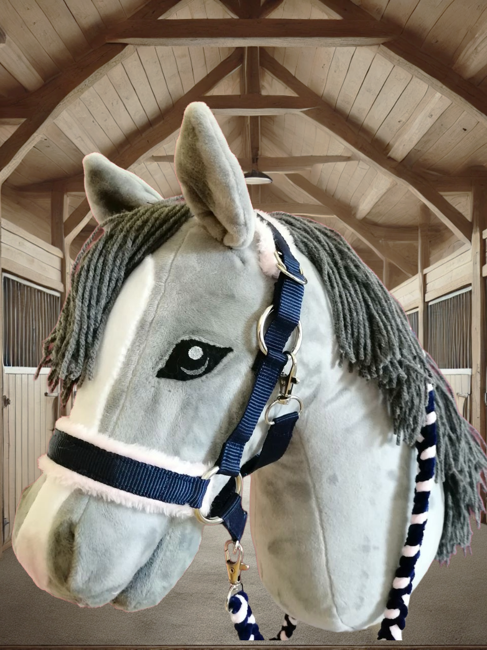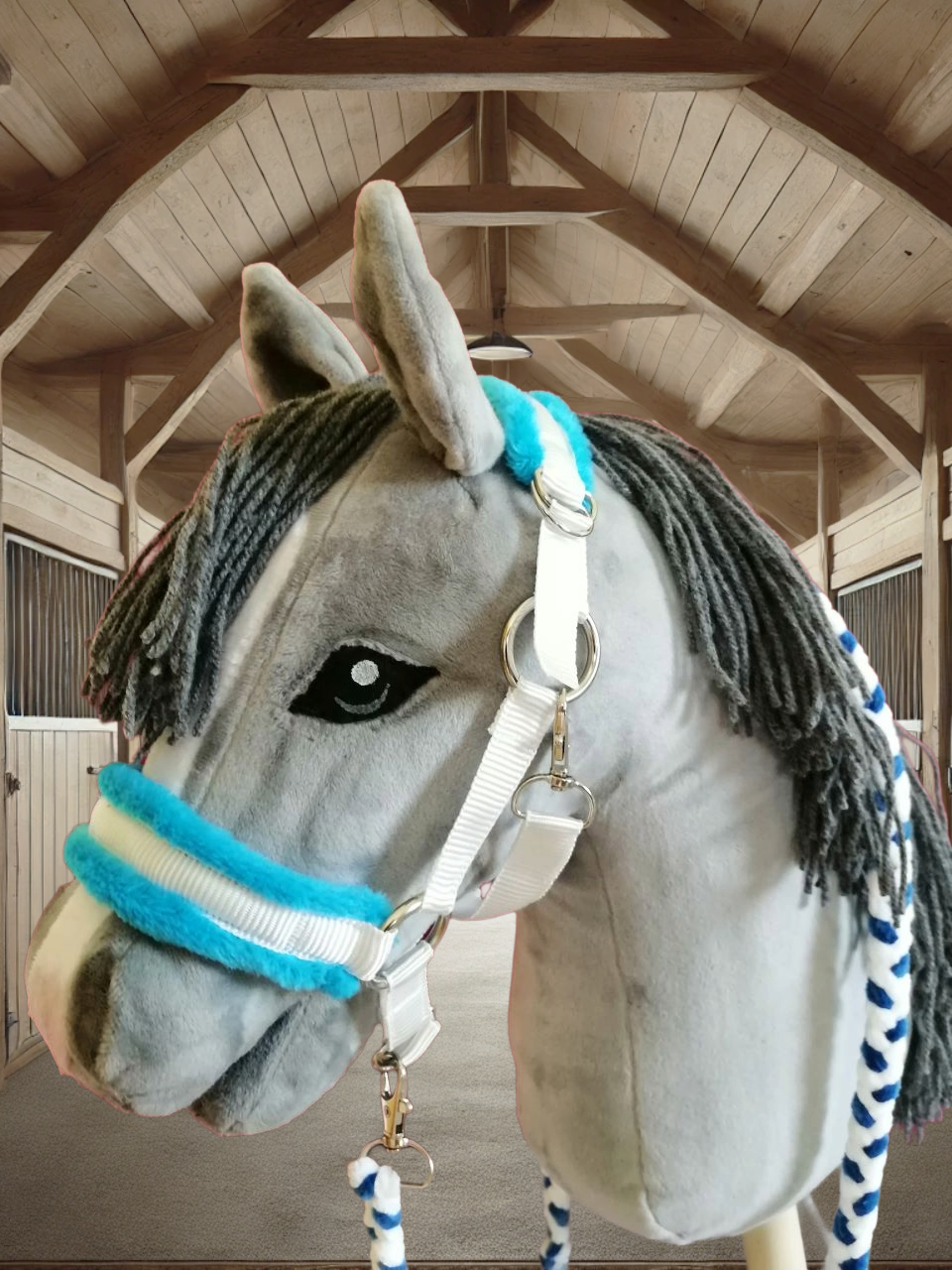 - Passform: Unsere Halfter sind zweifach verstellbar und passen Hobby Horses mit einer Kopfgröße von A4+ bis A3. Falls Sie ein kleineres Halfter benötigen, fertigen wir dieses gerne auf Anfrage an, um sicherzustellen, dass es perfekt sitzt.