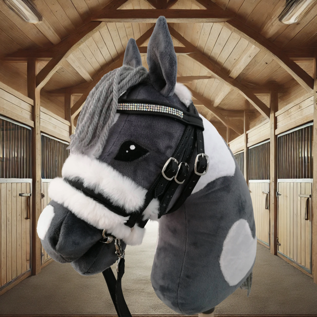 Verleihen Sie Ihrem Hobby Horse einen eleganten Look mit unserer exklusiven, handgefertigten Trense aus hochwertigem Kunstleder. Diese Trense wurde mit besonderer Sorgfalt gefertigt und ist das perfekte Accessoire, um jedes Hobby Horse zu einem echten Blickfang zu machen.