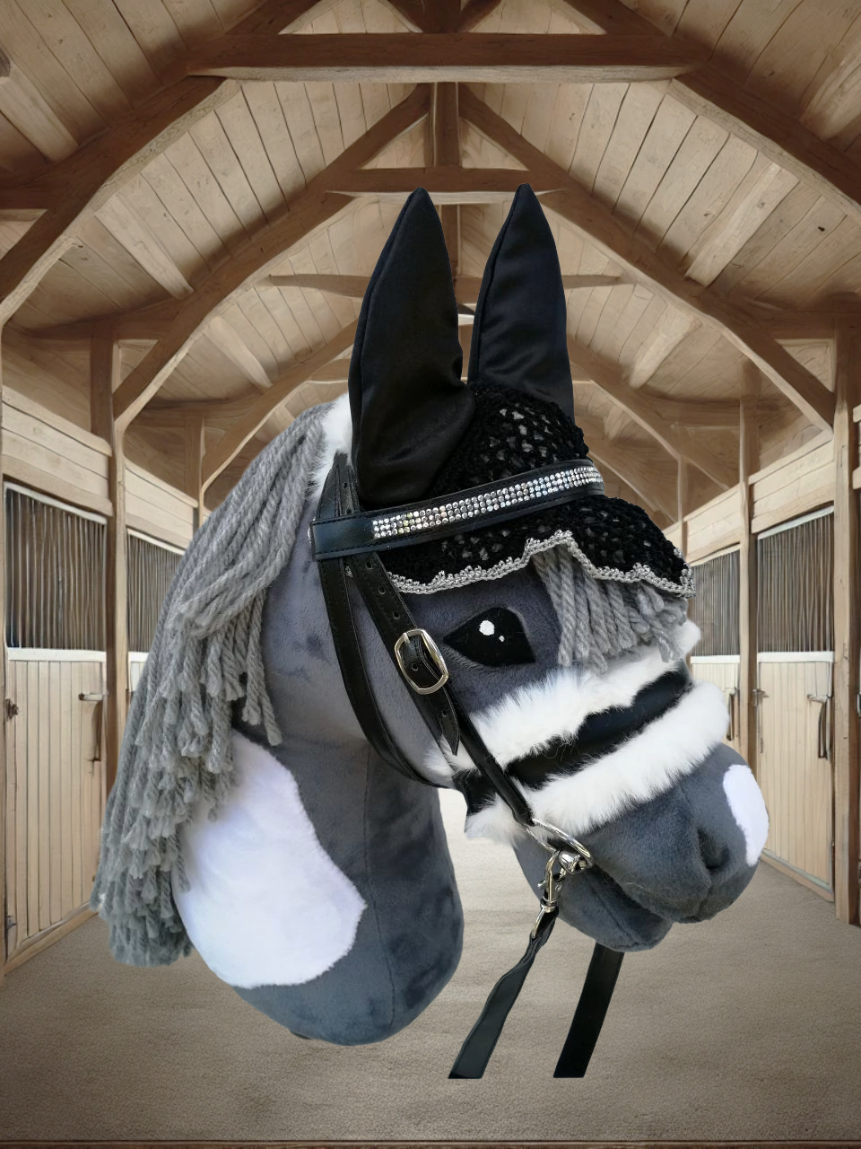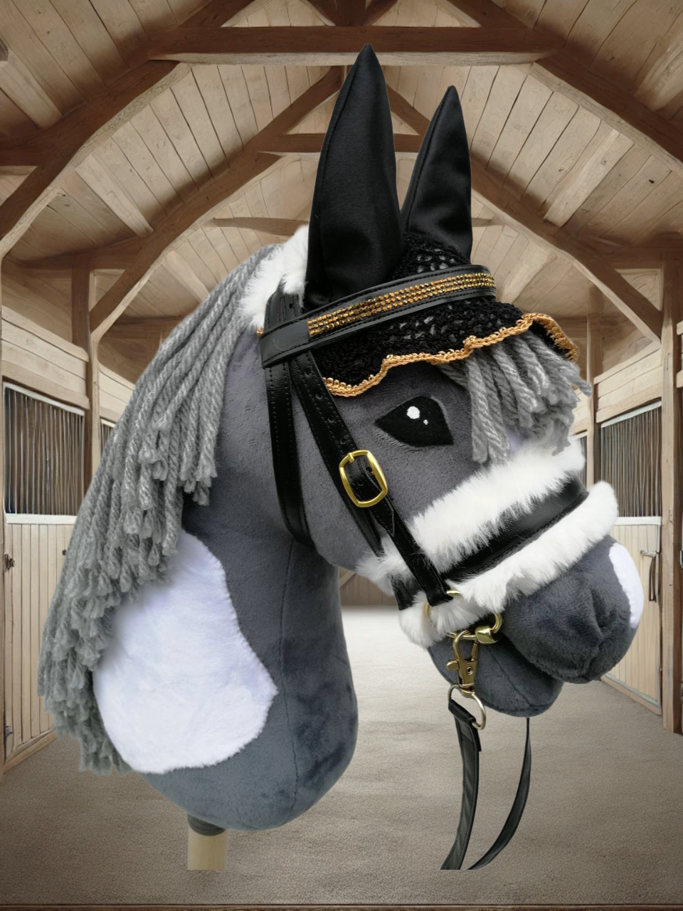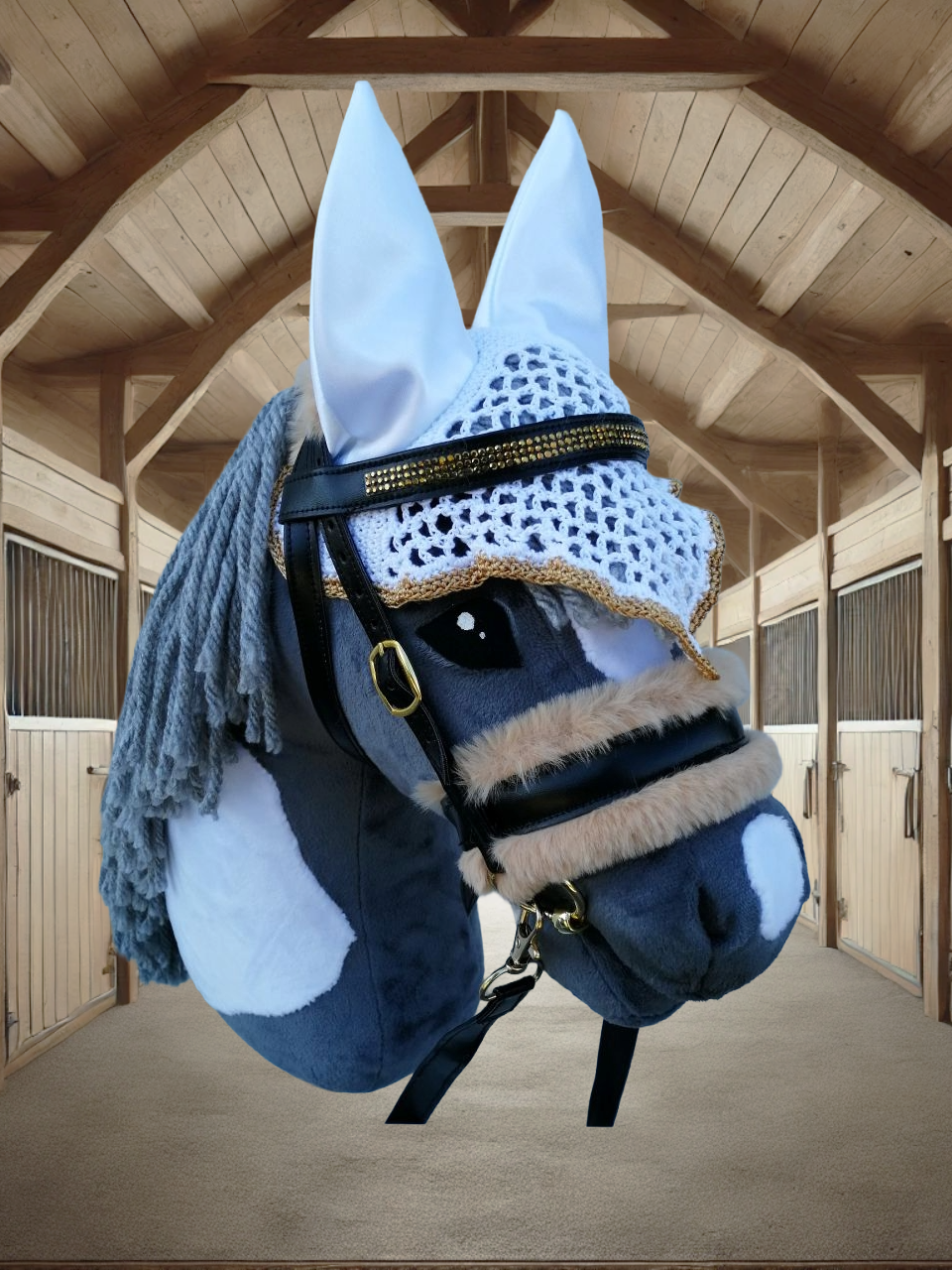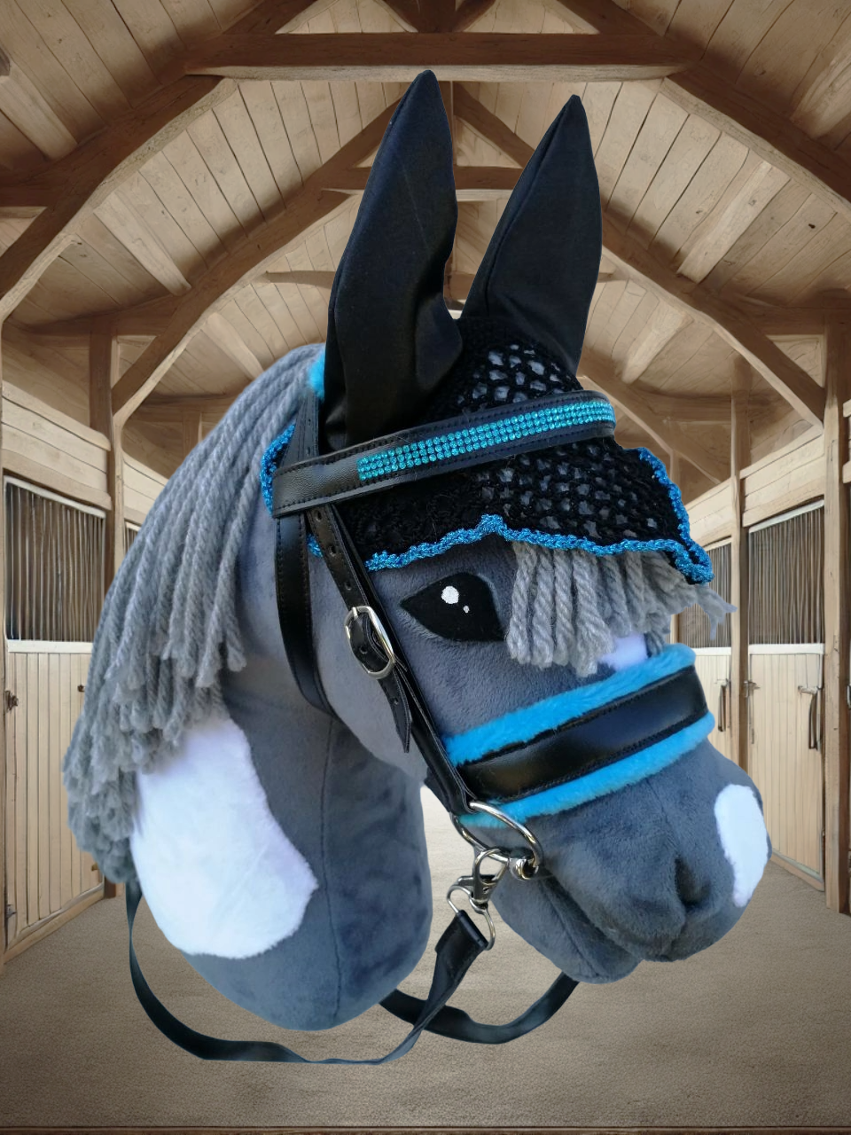 Unsere hochwertigen Turniersets bestehen aus einer sorgfältig genähten Trense und einer farblich abgestimmten Fliegenmütze, die jedes Hobby Horse in ein echtes Turnierpferd verwandeln. Diese Sets sind ideal für ambitionierte Hobby Horse-Reiter, die auf Stil und Qualität Wert legen.