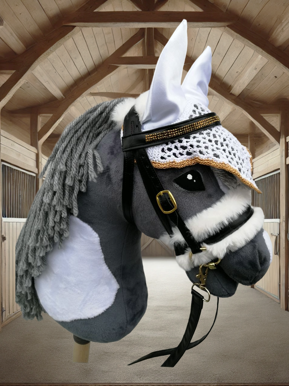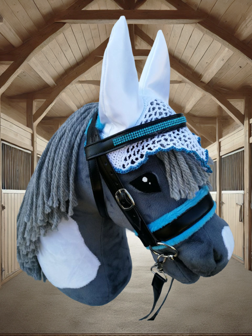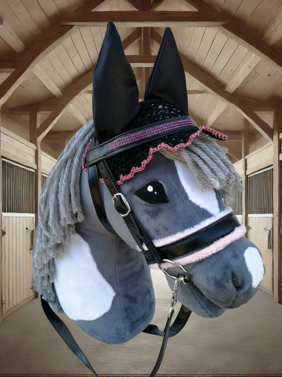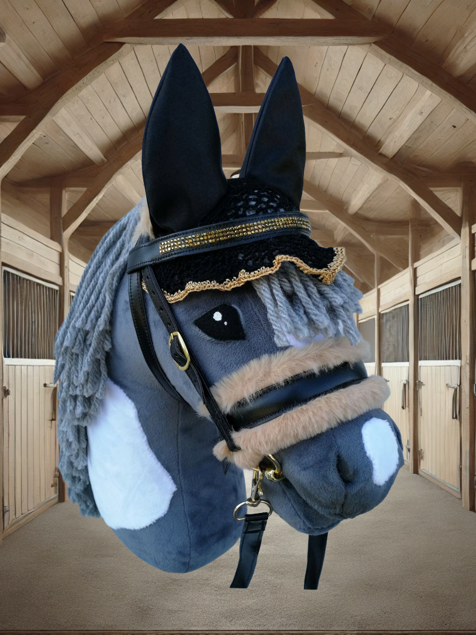 Unsere hochwertigen Turniersets bestehen aus einer sorgfältig genähten Trense und einer farblich abgestimmten Fliegenmütze, die jedes Hobby Horse in ein echtes Turnierpferd verwandeln. Diese Sets sind ideal für ambitionierte Hobby Horse-Reiter, die auf Stil und Qualität Wert legen.