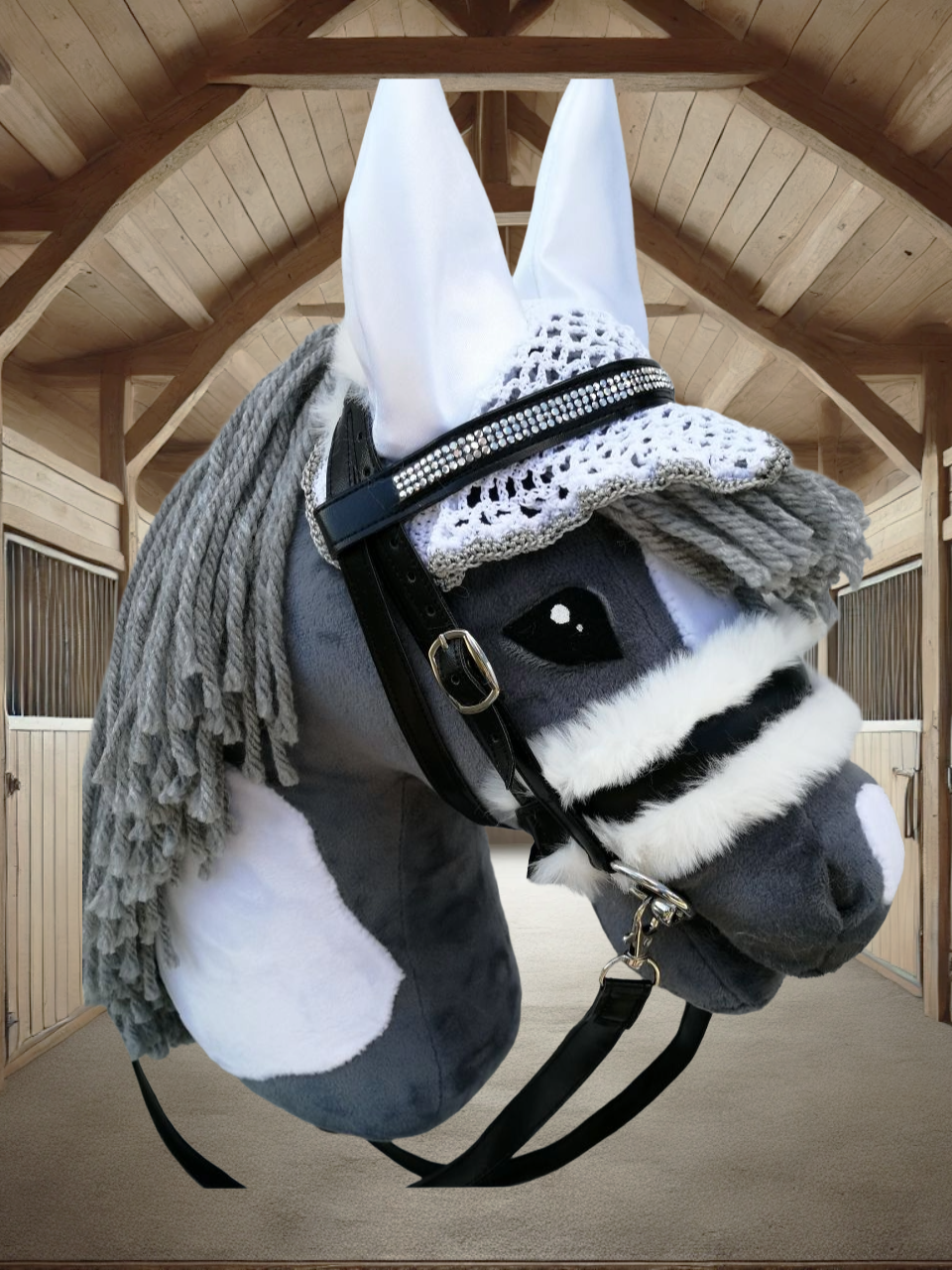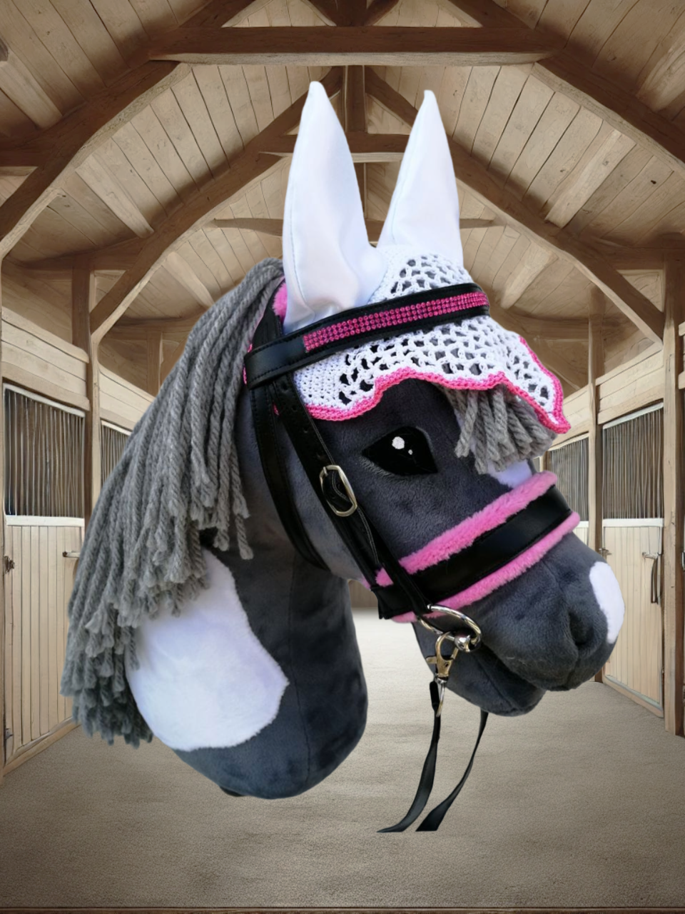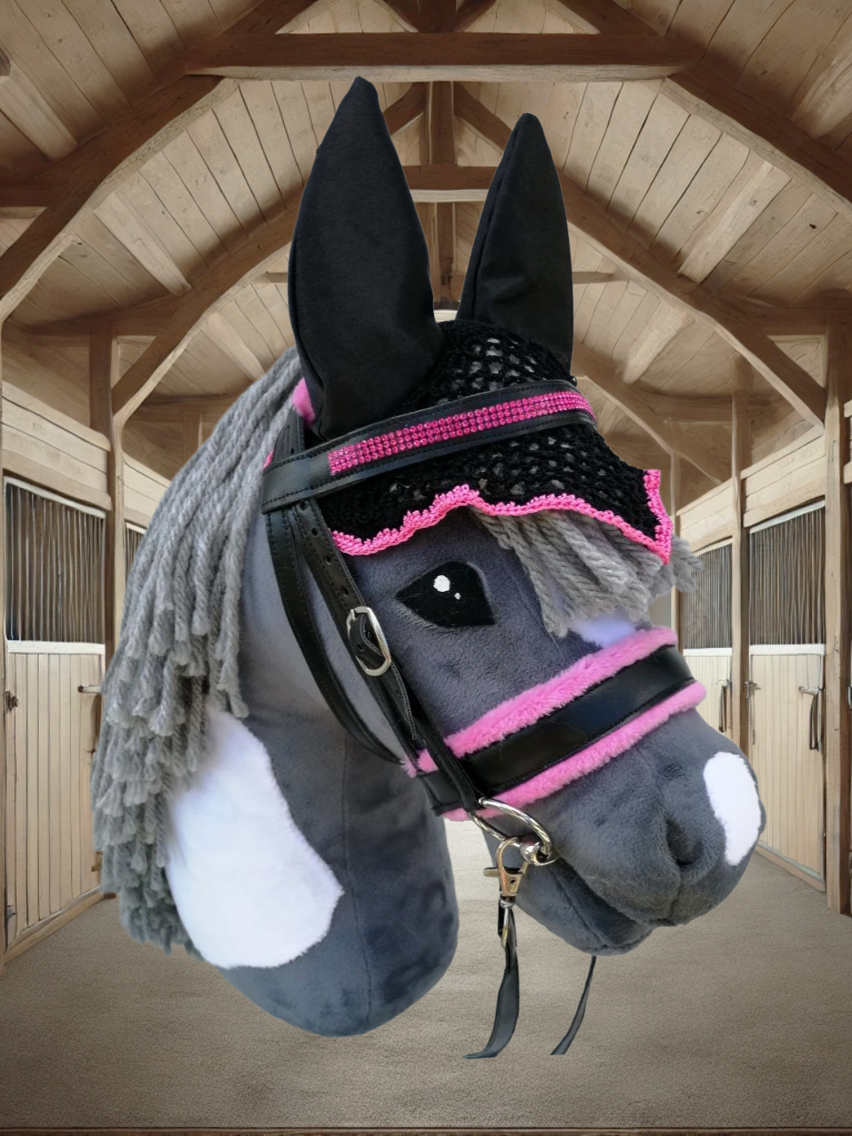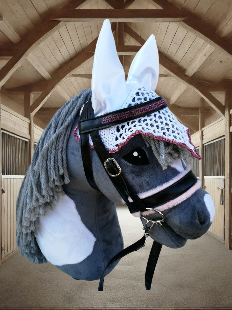 Unsere hochwertigen Turniersets bestehen aus einer sorgfältig genähten Trense und einer farblich abgestimmten Fliegenmütze, die jedes Hobby Horse in ein echtes Turnierpferd verwandeln. Diese Sets sind ideal für ambitionierte Hobby Horse-Reiter, die auf Stil und Qualität Wert legen.